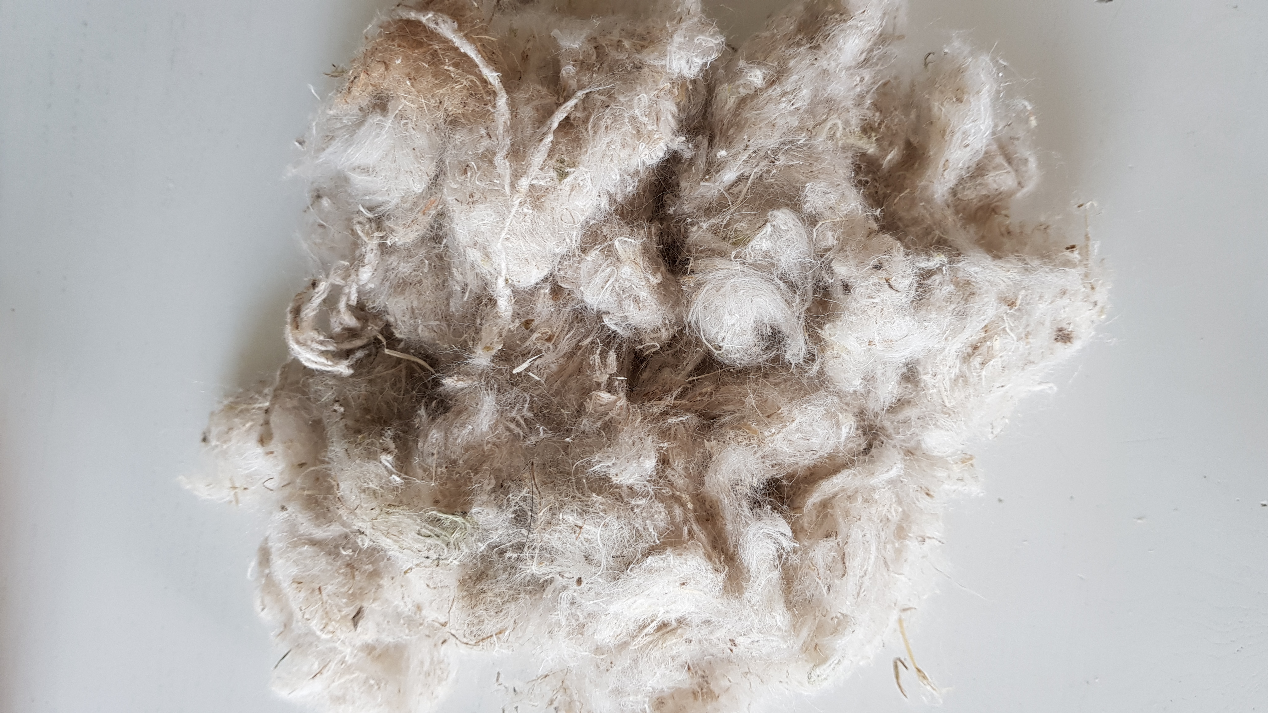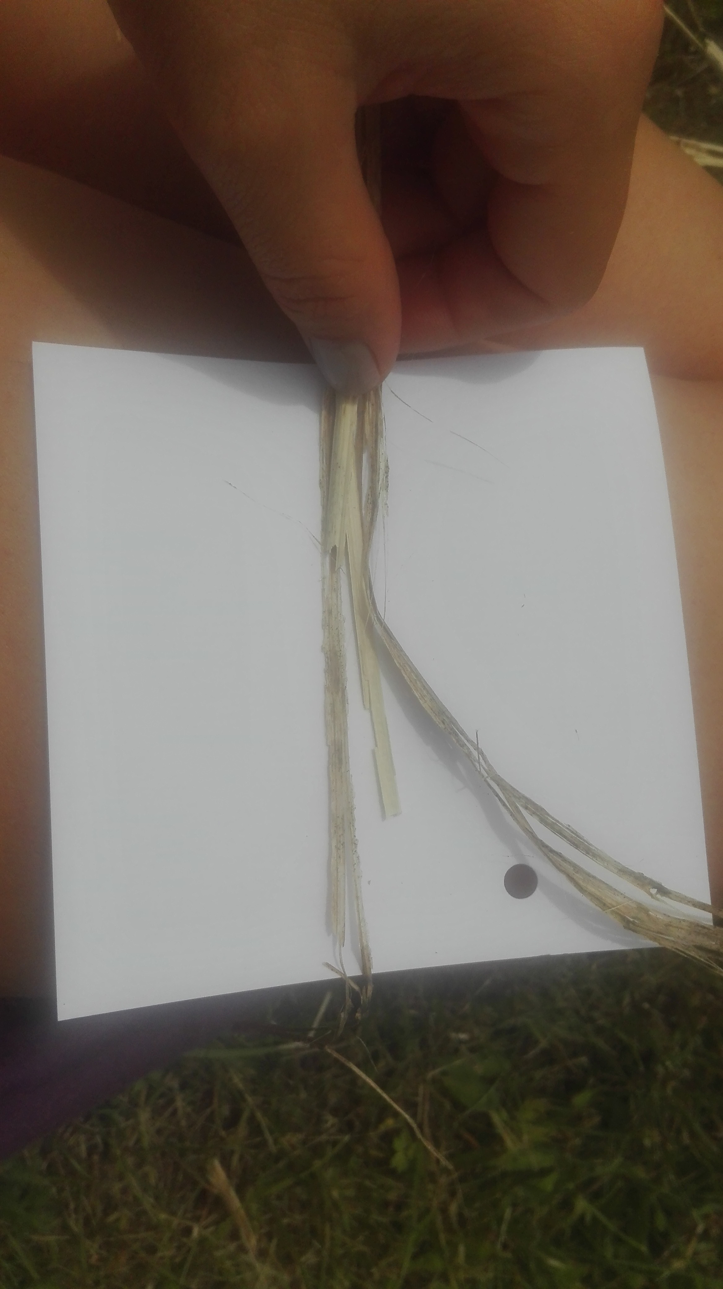 The fiber can be found on nettles, which look a bit darker than others. I took the fiber off gently to get the longest bandwidth.