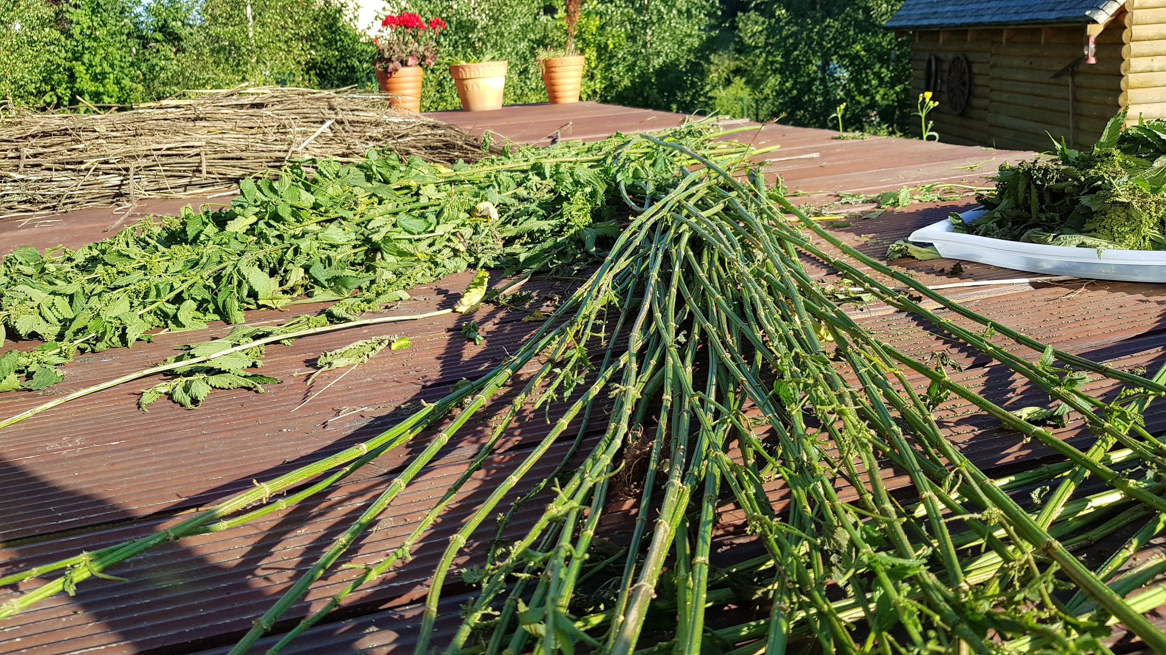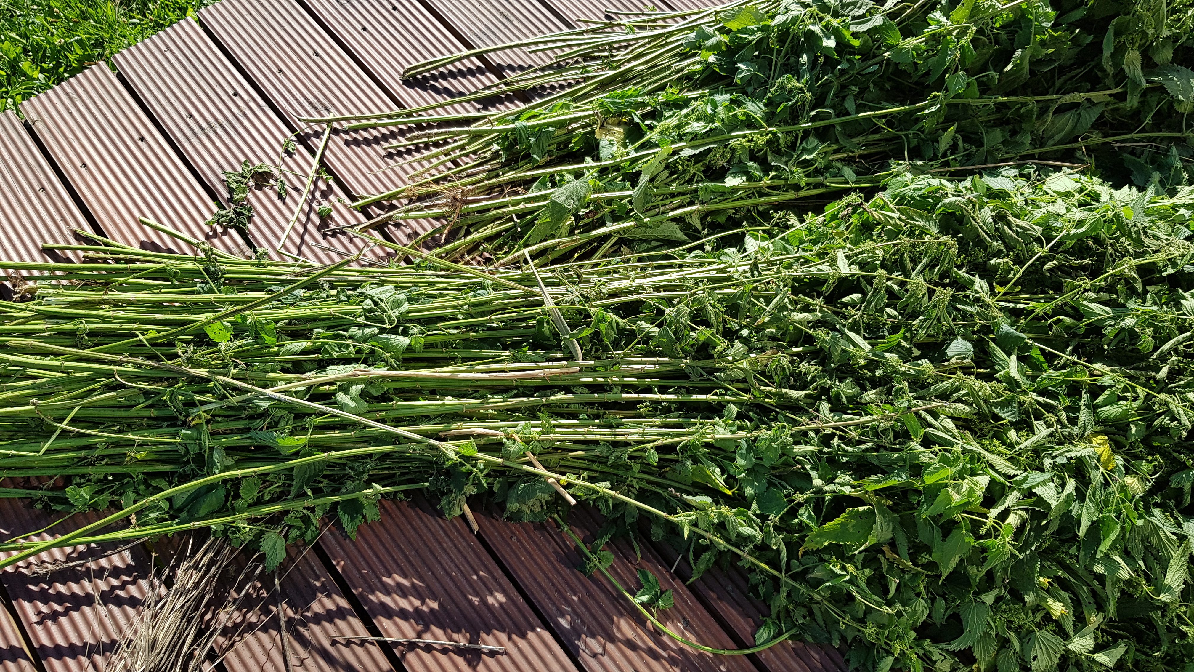 5kg nettles divided in 3 ways: retting, dew retting: